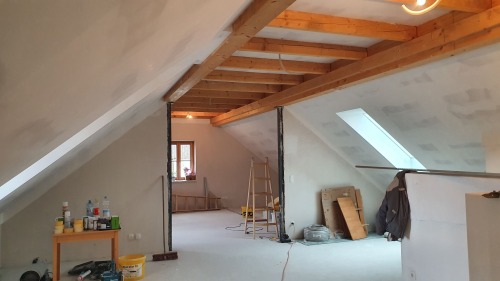 Hier einige Bilder der letzten Jahre von Dachausbauten – Decken-Wände-Isolierungen und Brandschut